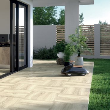 Feinsteinzeug Outfit 2.0 Holzoptik extern Holzeffekt Bodenfliesen Außenbereich Fliesen Terrassenplatten Terrassenfliesen Aussenfliesen extern Garten Gartenallee Balkon Natural Rektifiziert 1 Wahl R11 20mm 2cm XMR42R1