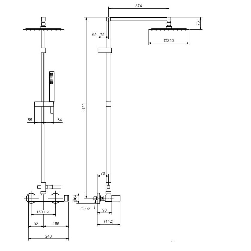 IB RUBINETTERIE MYSHOWER KOMPLETTER BAUSATZ MIT QUADRATISCHEM DUSCHKOPFARM
