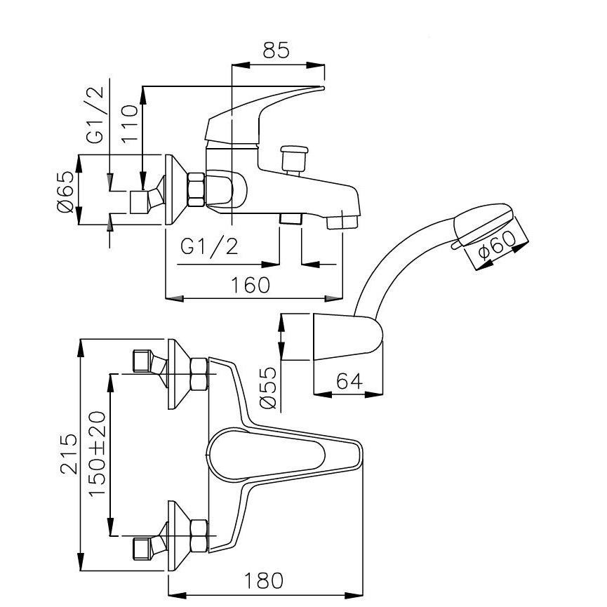 BUGNATESE XARA BADEWANNEN-AUSSENBATTERIE MIT CHROM-DUPLEX