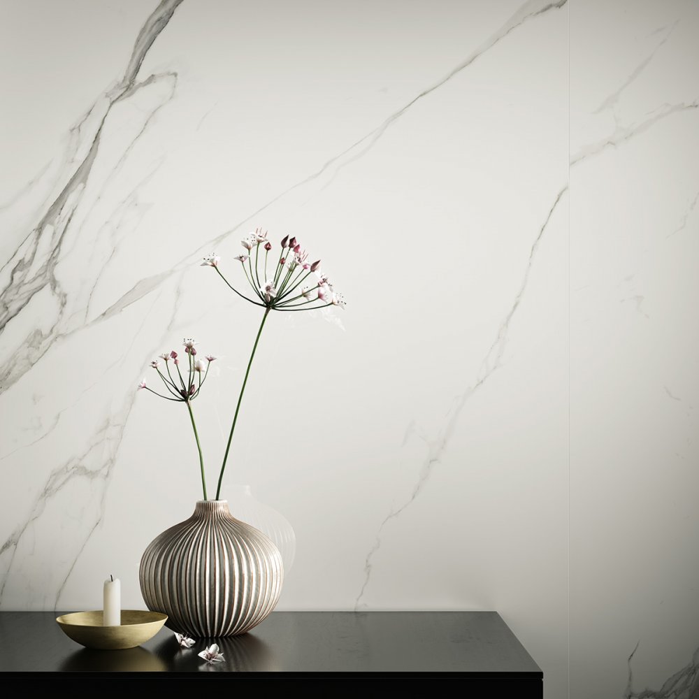 Erhältlich in großen Platten und 5 Farben, ermöglicht die Kollektion die individuelle Gestaltung von Böden und Wänden in privaten und öffentlichen Räumen.