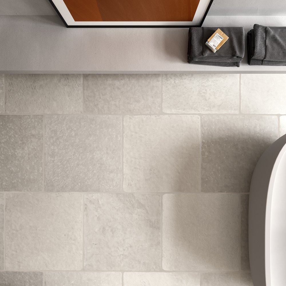 Die vier Farben Taupe, Grey, Beige und White sind in den Größen 60X60 - 80X80 - 60X120 erhältlich, aber auch in verschiedenen Größen und Mosaiken in getrommeltem Finish, die in Kombination mit der Dekoration Traces ein personalisiertes und exklusives Ergebnis garantieren.
