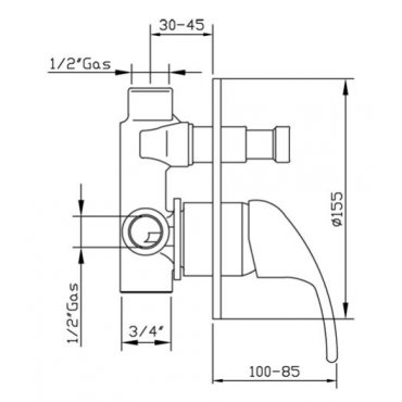 GABOLI FRATELLI BETA VERCHROMTE UNTERPUTZ-BRAUSE-BADEWANNENARMATUR MIT UMSTELLER