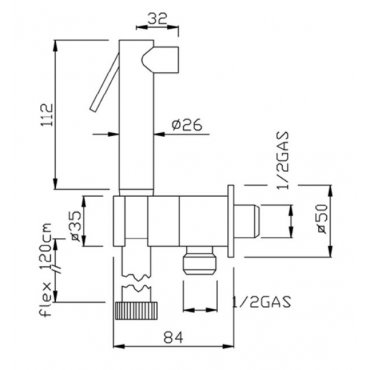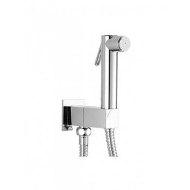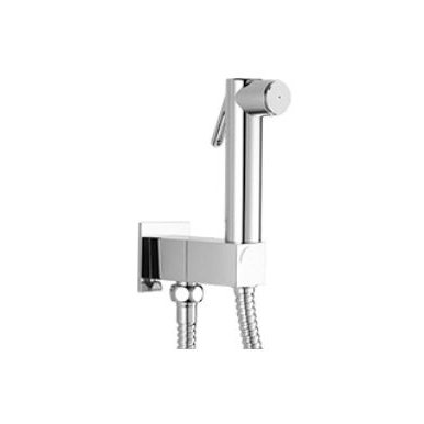 Duschset für WC, bestehend aus: Runde Messingdusche Quadratischer Wassereinlauf mit Duschhalterung und Sicherheitsventil aus Messing Flexibler Schlauch cm 120.