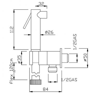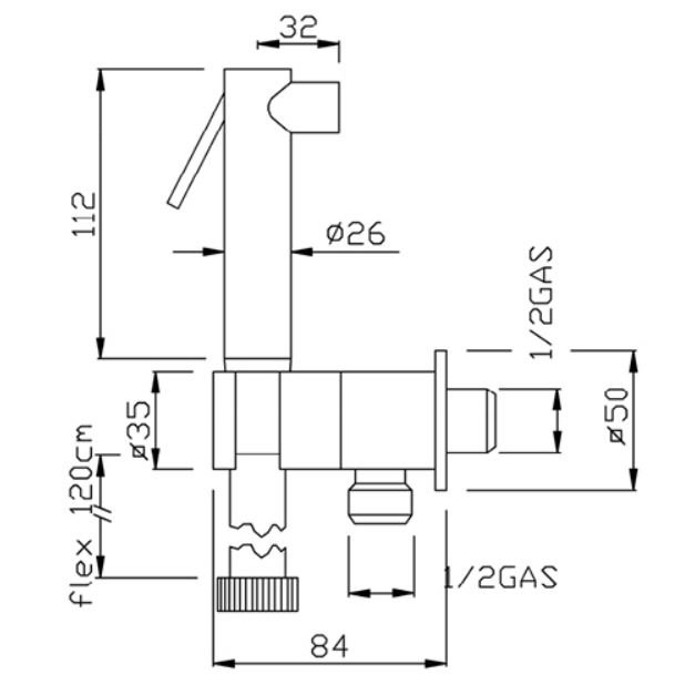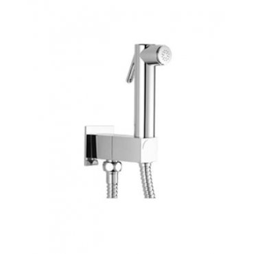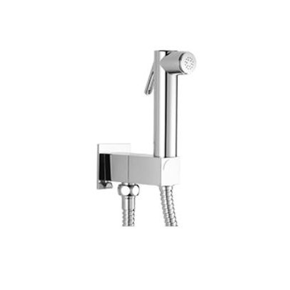 Duschset für Bidet, bestehend aus: Hygienische Runddusche aus Messing für Bidet Quadratischer Wasserablauf mit Duschhalterung und Sicherheitsventil aus Messing Flexibler Schlauch cm 120.