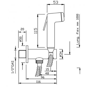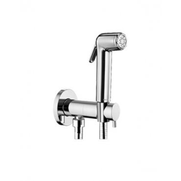 Duschset für Bidet, bestehend aus: Hygienische Runddusche für Bidet aus Abs. Runder Wassereinlass mit Duschhalterung und Sicherheitsventil aus Messing. Drehsicherer Schlauch cm 100 mit hohem Widerstand.