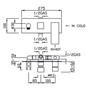 GABOLI FRATELLI STORM EINBAUMISCHER MIT 3 ABGÄNGEN UMSTELLER UND DUSCHSET