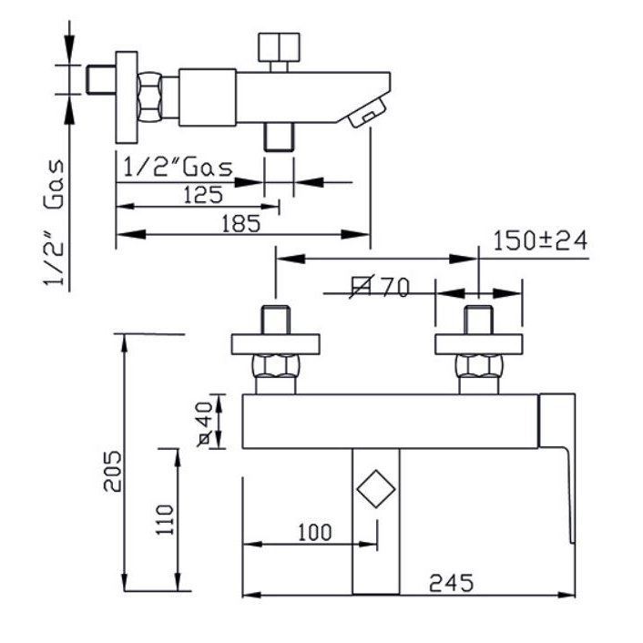 GABOLI FRATELLI STORM BADEWANNE AUFPUTZ MIT HALTERUNG UND HANDBRAUSE