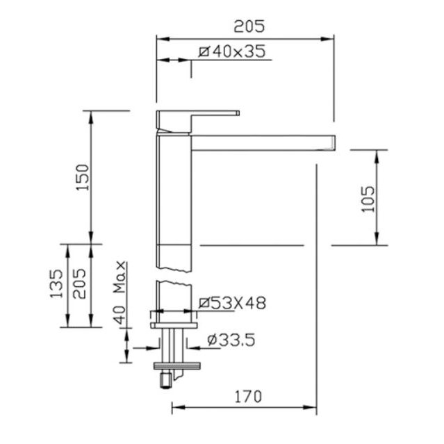 GABOLI FRATELLI SOPHIE WASCHTISCHMISCHER MIT LANGER AUSLAUF, 13CM VERLÄNGERUNG