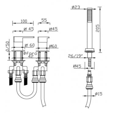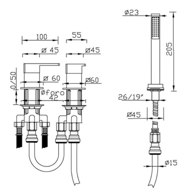 GABOLI FRATELLI SOPHIE BADEWANNENRANDMISCHER 3 LOCH MIT KIT DUSCHE