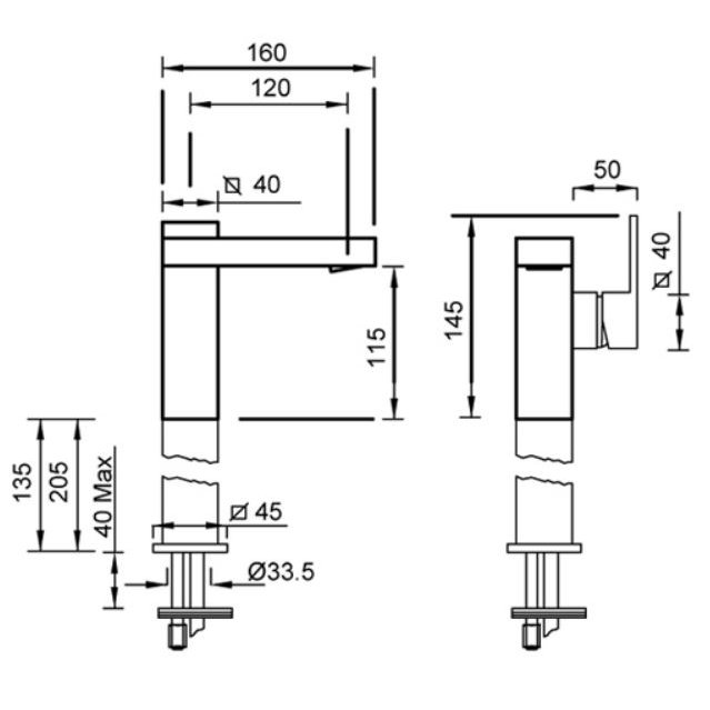 GABOLI FRATELLI NEW SPACE WASCHTISCHMISCHER MIT 130MM VERLÄNGERUNG