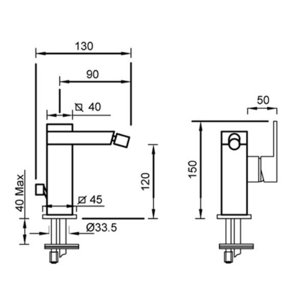 GABOLI FRATELLI NEW SPACE BIDETMISCHER MIT SEITLICHEM HEBEL UND ABLAUFGARNITUR