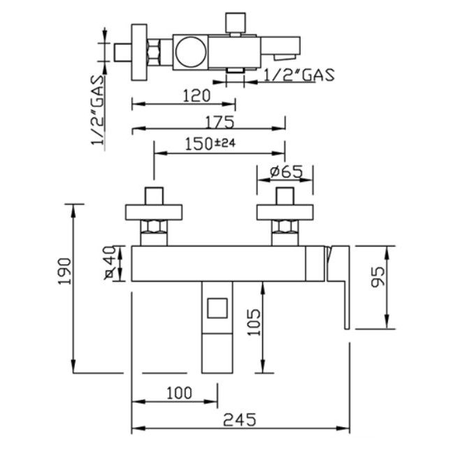 Einhebel-Wannenmischer für Aufputz-Armaturen mit Duplex-Halterung und Handbrause verchromtem 3310