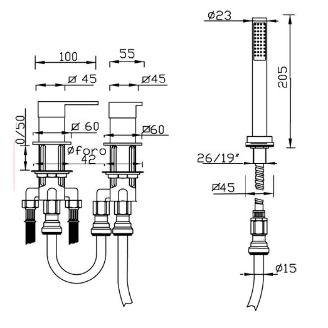 GABOLI FRATELLI NEW SPACE BADEWANNENRANDMISCHER 3 LOCH MIT KIT DUSCHE