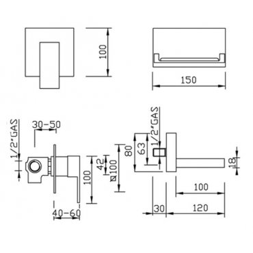 GABOLI FRATELLI OPEN SPACE UNTERPUTZMISCHER FÜR WASCHBECKEN MIT WASSERFALL 120MM