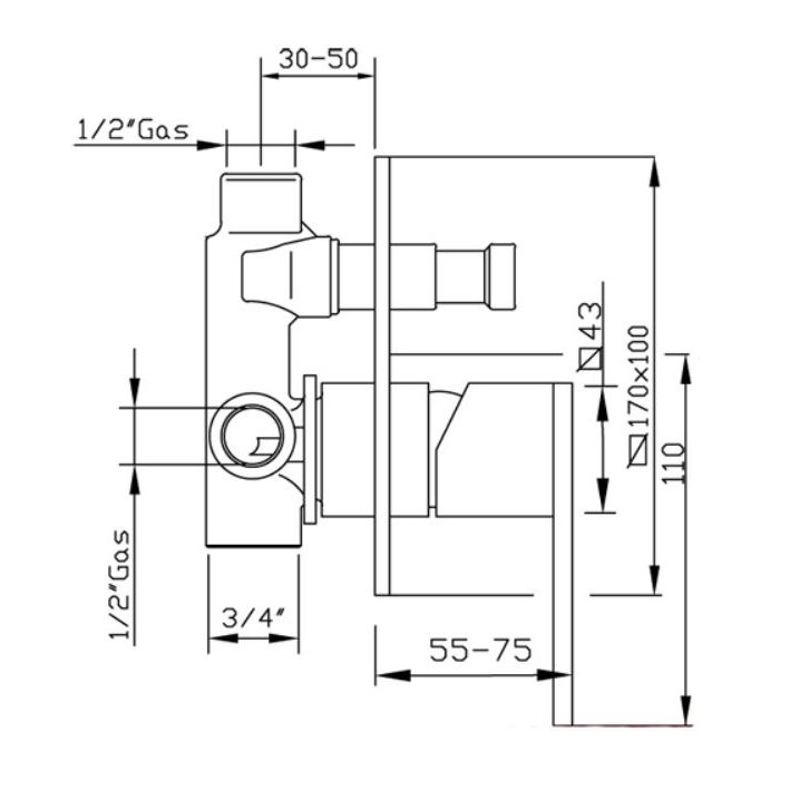 GABOLI FRATELLI KLIP EINGEBAUTER DUSCHMISCHER MIT UMSTELLER