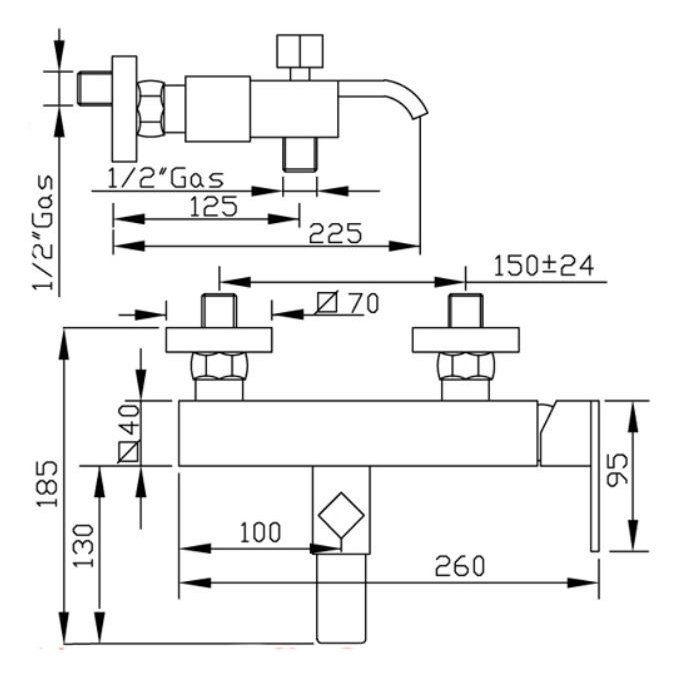 Einhebel-Wannenmischer für Aufputz-Armaturen mit Duplex-Halter und Handbrause verchromtem 2810