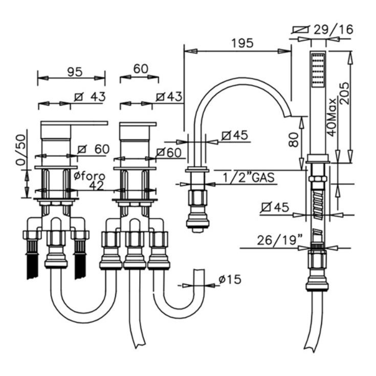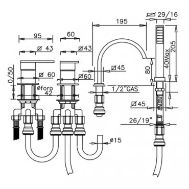 GABOLI FRATELLI KLIP BADEWANNENRANDMISCHER 4 LOCH MIT KIT DUSCHE