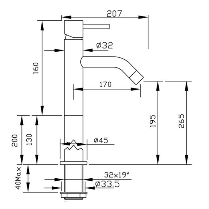 NEWFORM O'RAMA HOHE WASCHBECKENBATTERIE OHNE ABLAUF CHROM