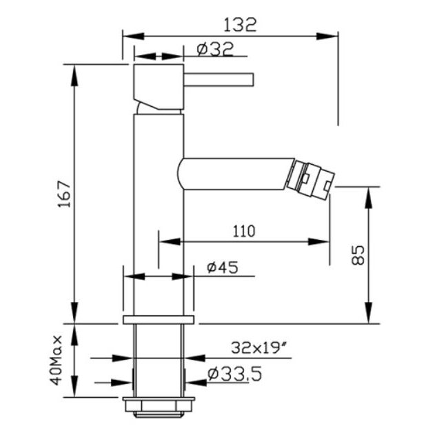 BUGNATESE AXO EINLOCHMISCHER BIDET MIT SPÜLGRIFF FENICE CHROM
