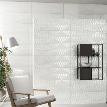 Die Königlichkeit der Mamor-Oberflächen vermählt sich mit raffinierten dreidimensionalen Dekorationen. Entwickelt in den Größen 33,3x100 und 33,3x33,3 cm mit glänzender Oberfläche und hergestellt im Zweibrandverfahren in den Farben Pearl, Silver, Amber und Milk, bietet sie unendlich viele Kombinationsmöglichkeiten, die dem Bad die Eleganz und den Stil verleihen, die nur echte italienische Keramik bieten kann.