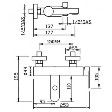GABOLI FRATELLI MÏA BADEWANNE AUFPUTZ MIT HALTERUNG UND HANDBRAUSE