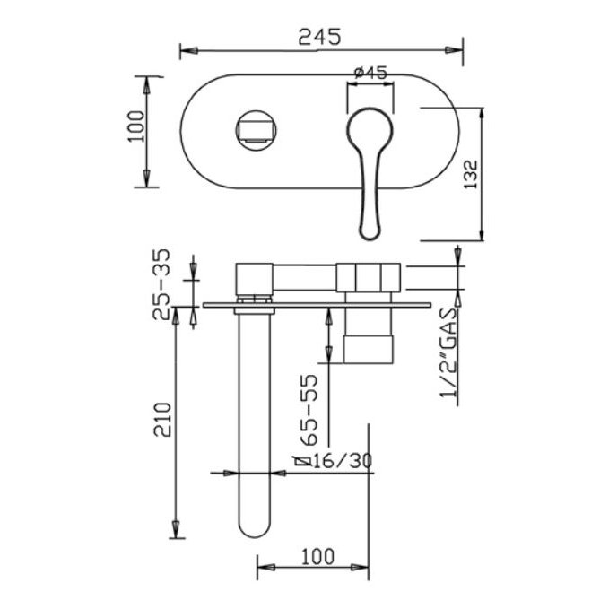 Nicht überprüfbare Unterputz-Waschtischbatterie mit wandmontiertem Auslauf ohne Ablaufgarnitur verchromtem 4381