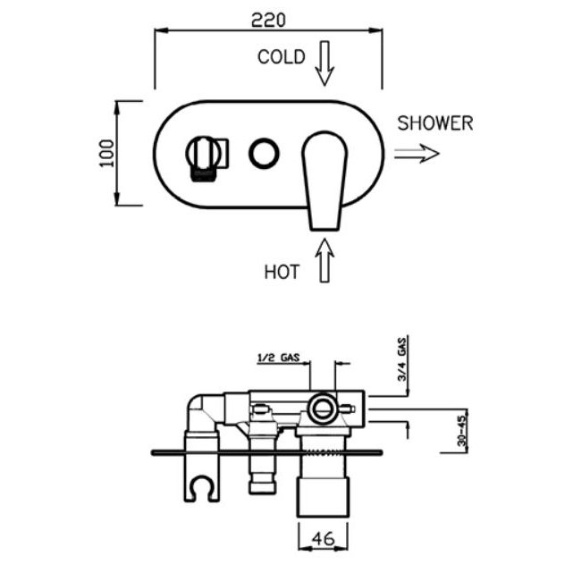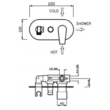 GABOLI FRATELLI KYRO EINGEBAUTER DUSCH/BADEWANNE MISCHER MIT UMSTELLER