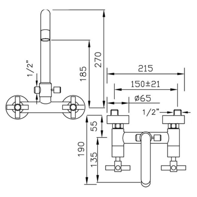 Wannenbatterie für die Wandmontage mit Brausegarnitur und Keramikarmaturen verchromtem 933