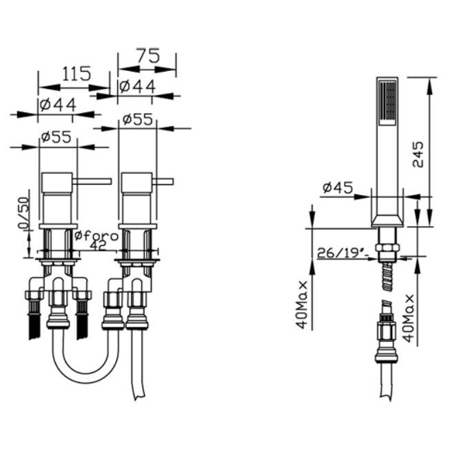 GABOLI FRATELLI SIMPLY BADEWANNENRANDMISCHER 3 LOCH MIT KIT DUSCHE