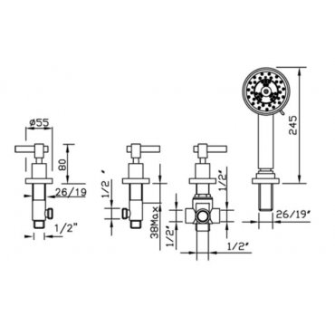 GABOLI FRATELLI MOOD 4-LOCH-WANNENBATTERIE MIT BRAUSEGARNITUR UND UMSTELLER