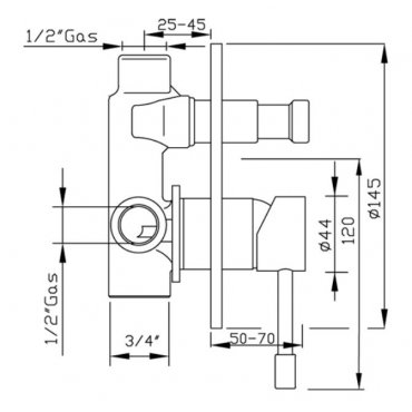 GABOLI FRATELLI GRILLO EINGEBAUTER DUSCH/BADEWANNE MISCHER MIT UMSTELLER