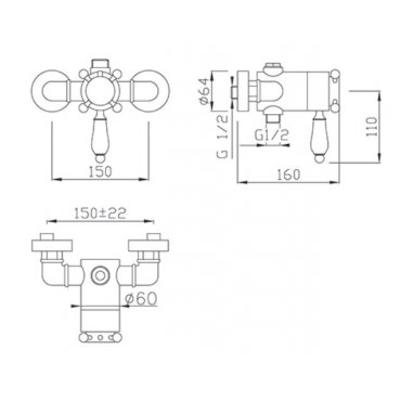 • GABOLI FRATELLI THERMO.LINE THERMOSTATISCHE BRAUSEBATTERIE 2 AUSGÄNGEN