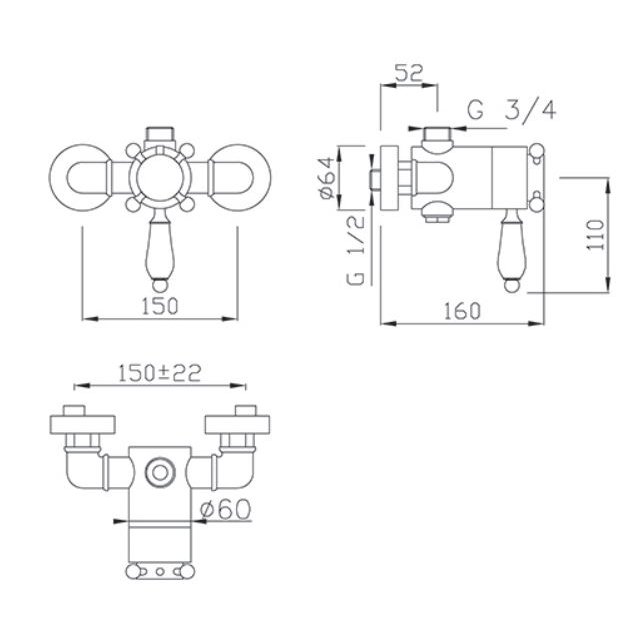 QUADRO DESIGN HB THERMOSTAT-WANDBATTERIE MIT ABSPERRHAHN