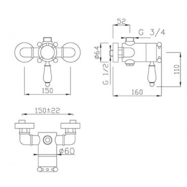 Thermostat-Brausebatterie für Aufputzarmatur "Style" vorbereitet für Duschsäule.