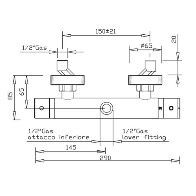 • GABOLI FRATELLI THERMO.LINE THERMOSTATISCHE BRAUSEBATTERIE 2 AUSGÄNGEN