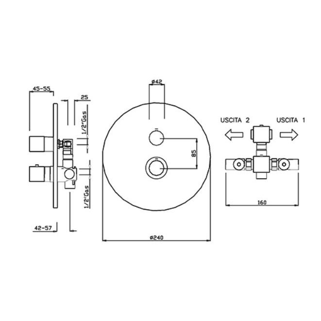 GABOLI FRATELLI THERMO.LINE THERMOSTATISCHE UNTERPUTZ-BRAUSEBATTERIE 2 AUSGÄNGEN