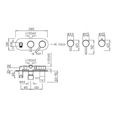 • GABOLI FRATELLI THERMO.LINE THERMOSTATISCHE UNTERPUTZ-BRAUSEBATTERIE 2 AUSGÄNGEN