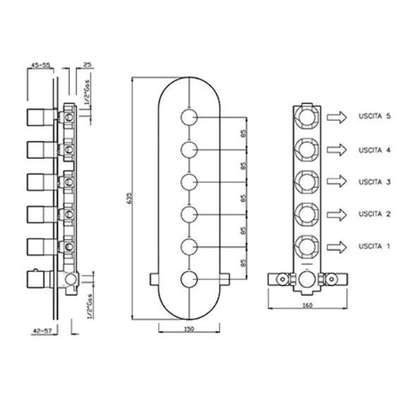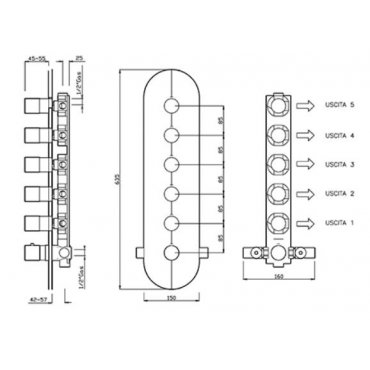 Thermostatmischer mit hohem Durchfluss für die Unterputzdusche mit 5 Abgängen verchromtem 2458