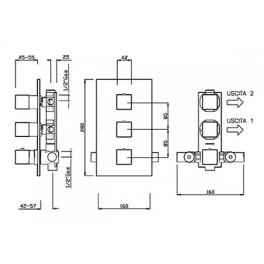 Thermostatbatterie mit hohem Durchfluss für die Unterputzdusche mit 2 Abgängen verchromtem 2475