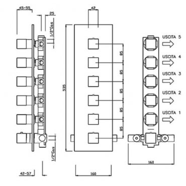 Thermostatmischer mit hohem Durchfluss für die Unterputzdusche mit 5 Abgängen verchromtem 2478