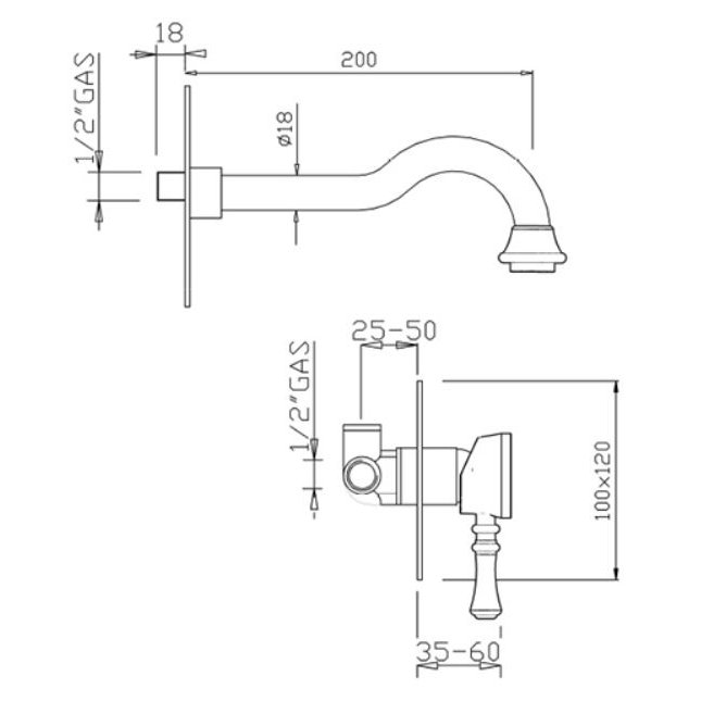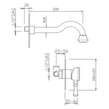 Unterputz-Waschtischbatterie mit wandmontiertem Auslauf ohne Ablaufgarnitur verchromtem 5470