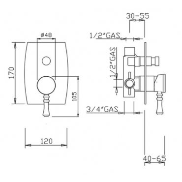 GABOLI FRATELLI BETTY EINGEBAUTER DUSCH/BADEWANNE MISCHER MIT UMSTELLER