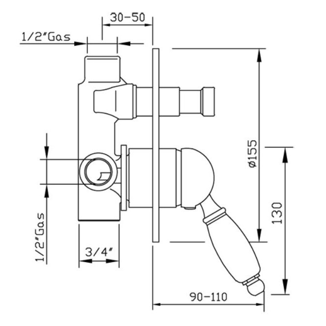 GABOLI FRATELLI PARENTESI EINGEBAUTER DUSCH/BADEWANNE MISCHER MIT UMSTELLER