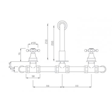 Unterputz-Dreiloch-Waschtischbatterie ohne Ablaufgarnitur mit festem Achsabstand verchromtem 893FIX