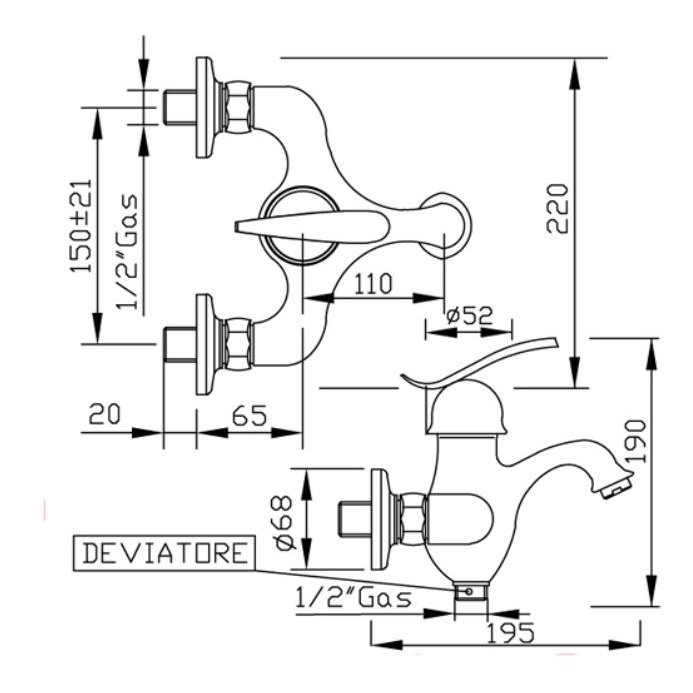 GABOLI FRATELLI TEORIA BADEWANNE AUFPUTZ MIT HALTERUNG UND HANDBRAUSE