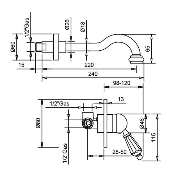 GABOLI FRATELLI NEW VINTAGE EINBAUWASCHBECKENMISCHER MIT WANDAUSGUSS