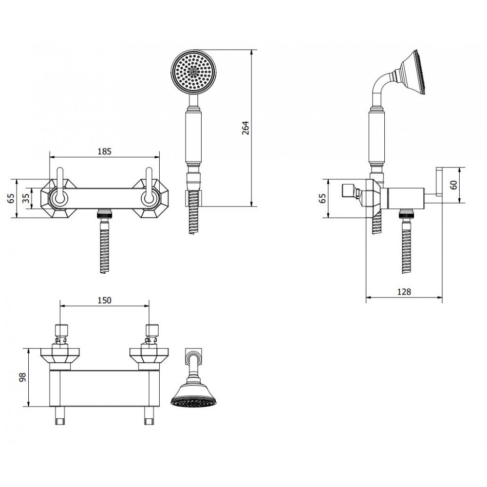 IB RUBINETTERIE BELMONDO WAND-BRAUSEBATTERIE KOMPLETT MIT BRAUSEGARNITUR