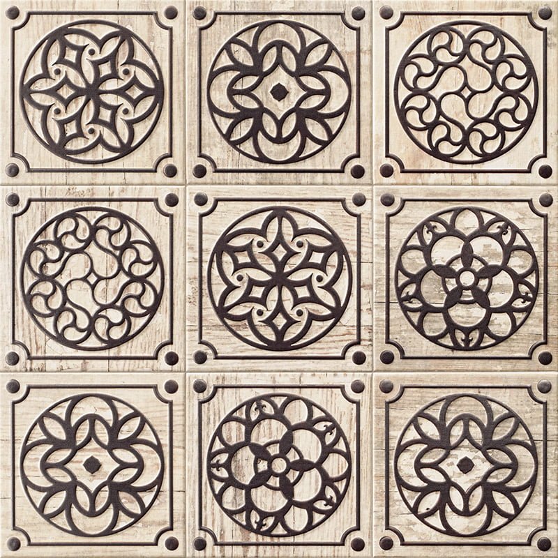 Die Serie besteht aus zwei Farben Mango und Caoba, verziert mit 4 Dekoren indias, ferro, pastime, grille. Colonial ist ideal für Bäder, Küchen, Wohnräume und öffentliche Räume.