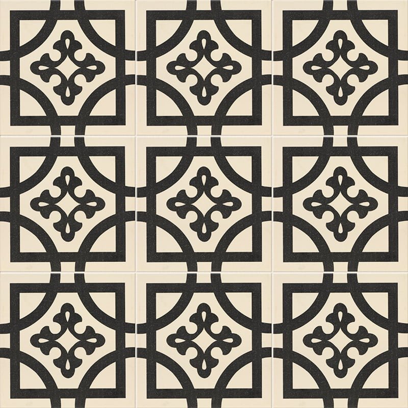 Die Bulgari-Kollektion von Mainzu für Boden- und Wandfliesen ist ein Dekor, das mehrere abstrakte Designs auswählt, die durch eine dunkle Linie und einen weißen Hintergrund gekennzeichnet sind.