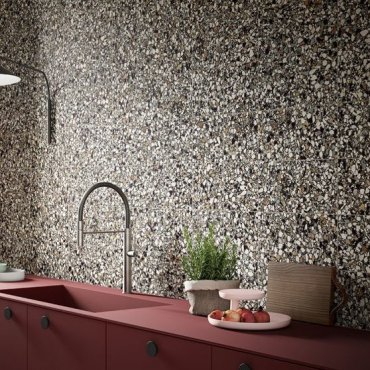 Ein Feinsteinzeug, das sowohl als Boden- als auch als Wandfliese erhältlich ist, ideal für Küchen, Wohnzimmer, Bäder und gewerbliche Räume. Eine 20x20 Größe für die Fliesen und eine 7,5x40 Größe für die Ziegel.